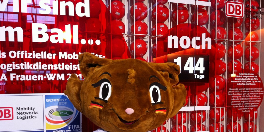 Deutsche Bahn WM Ballmaschine Deutsche Bahn WM Ballmaschine zur FIFA Frauen-WM 2011 in 7 Bahnhöfen. Einmal am Tag 90 min Countdown zum Ballauswurf – sonst Tages-Countdown zum Anstoss der WM. Auftraggeber: IT Data SystemsZeitraum: 2011 Für weitere Informationen zu diesem Projekt, wenden Sie sich bitte an:Michael Lorenz+49 (0)30 322 99 128info@graphscape.de